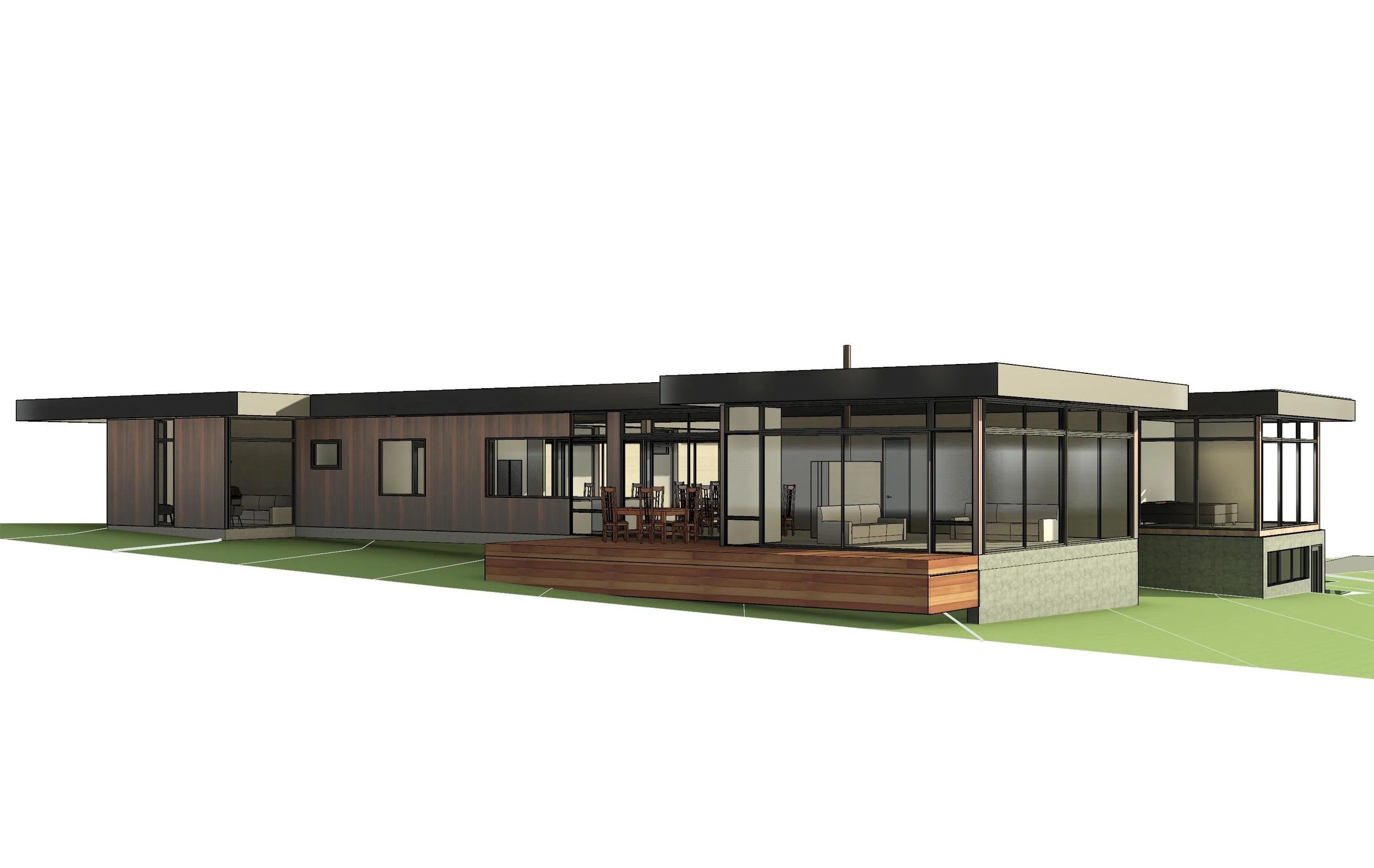 Located on the Bellarine Peninsula, this 30 hectare property has stunning uninterrupted panoramic views from the You Yangs and beyond to The Rip. Zoned Farming and with environmental significance, the brief was to design a house that could sit comfortably on a large property. With a predetermined building envelope, the siting for the house responded to the often harsh wind conditions. The solution was a U shaped house where the outdoor spaces and pool were protected from the winds while also taking advantage of the sun. Reflecting the scale of the property, the house is expanse, it provides a wing for guests and family, a separate wing for the permanent residents joined by a living zone that has stunning views toward Swan Bay, the sand dunes and ocean beyond
